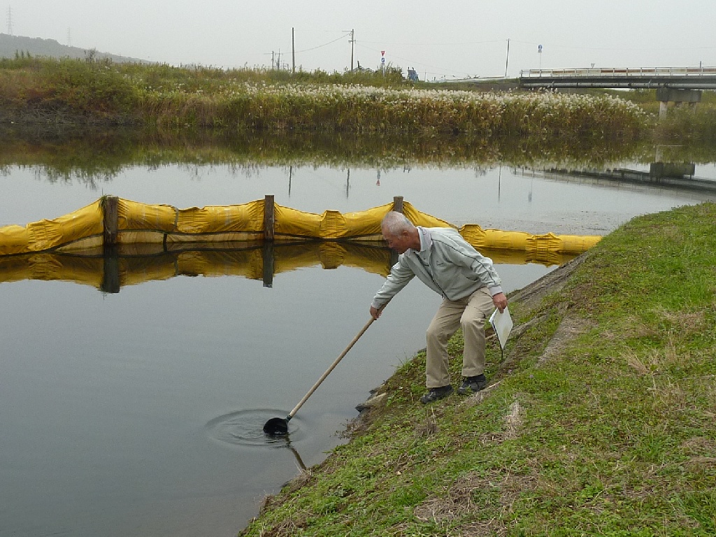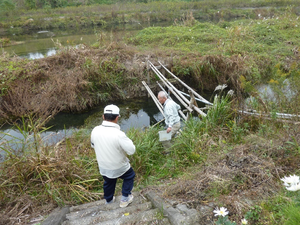 今回は水質検査の他に、ジャンボタニシの生息地調査も行いました