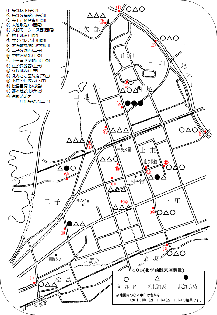 今回の検査結果をまとめた表(地図)を作成しました