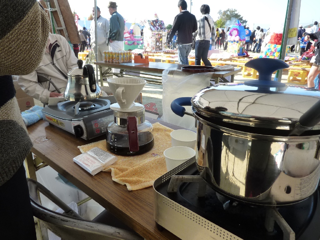 掲示物の掲示や、販売予定のコーヒーとスープの準備