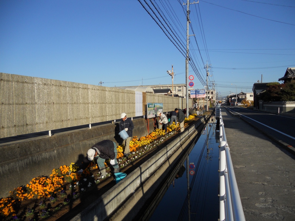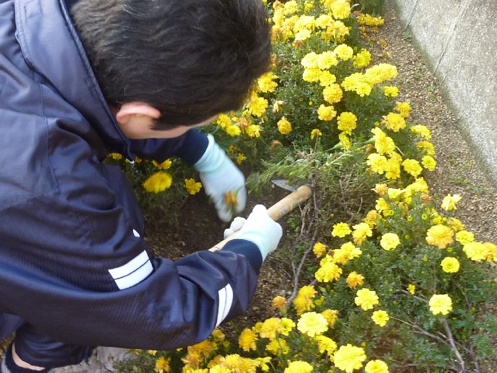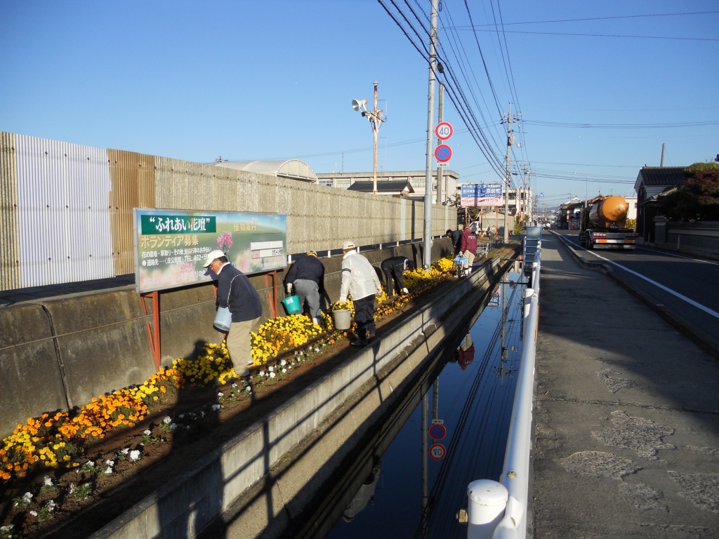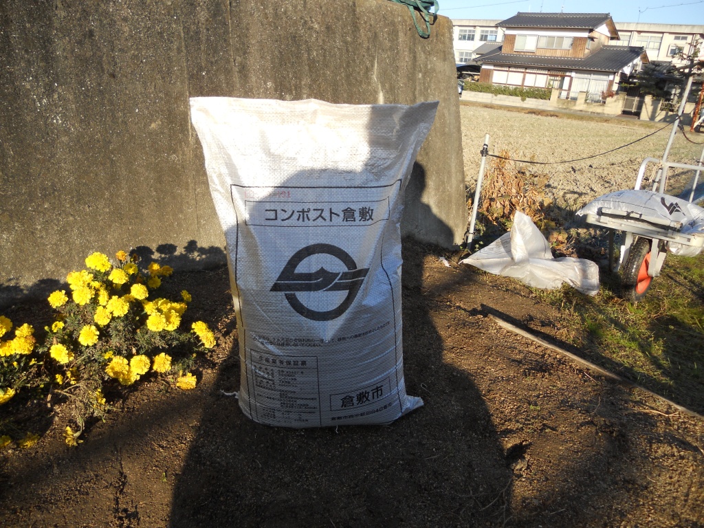 11/25(木)の事務局会で急に決まった、ふれあい花壇の施肥作業です