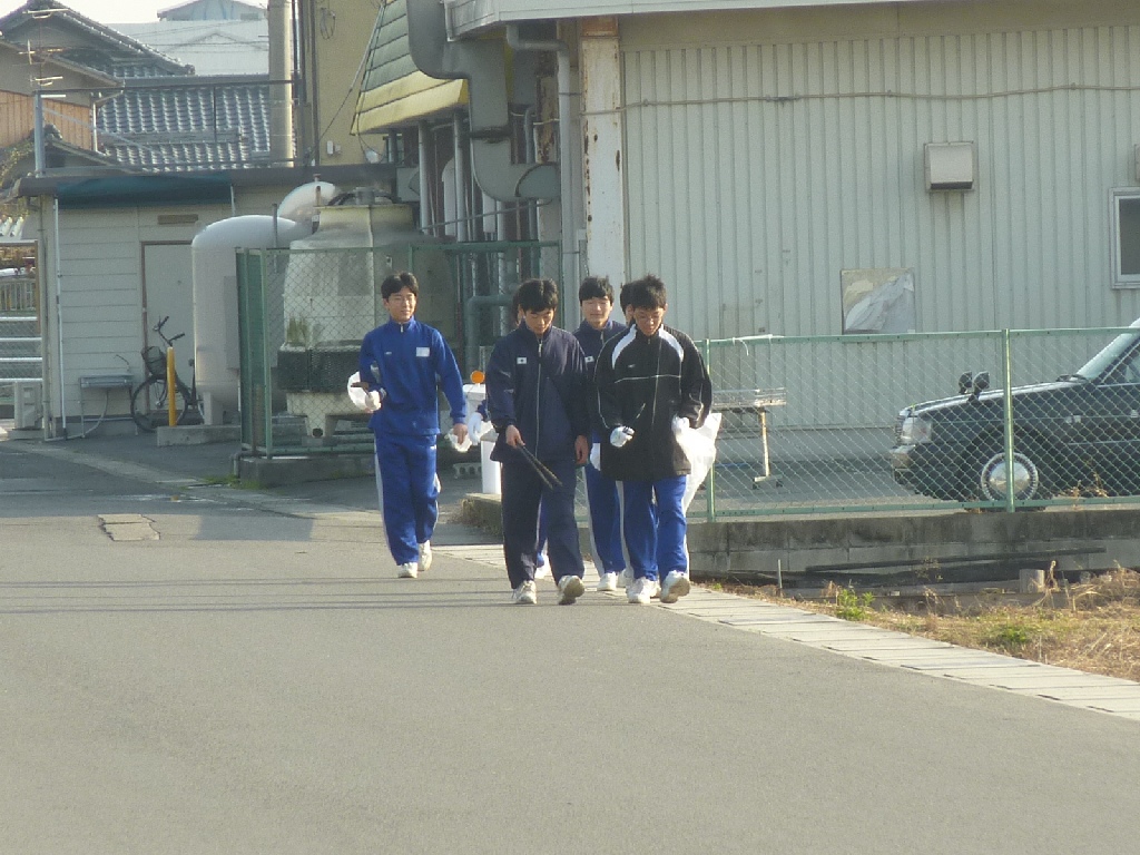もちろん!中学生もこうしてゴミを拾って歩きます