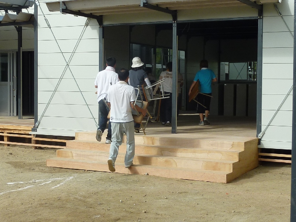 耐震工事対象の教室から、仮設校舎に…