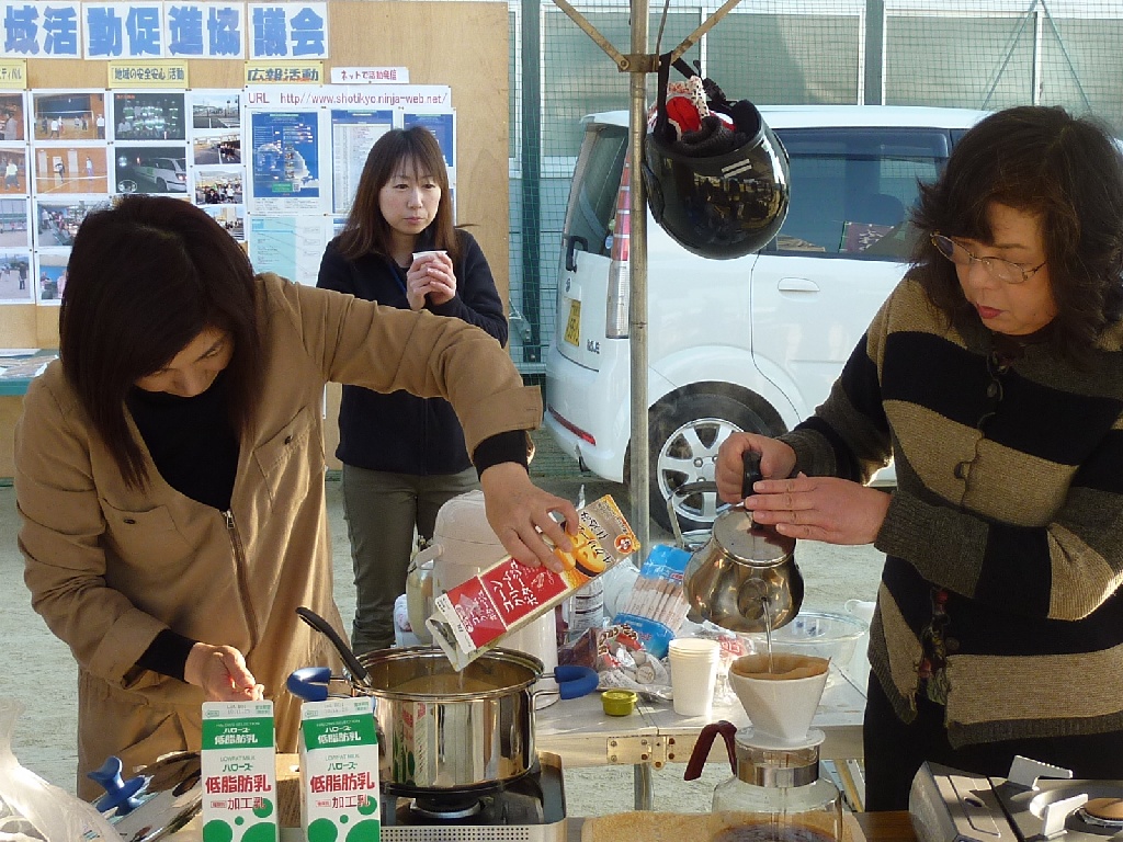 掲示物の掲示や、販売予定のコーヒーとスープの準備