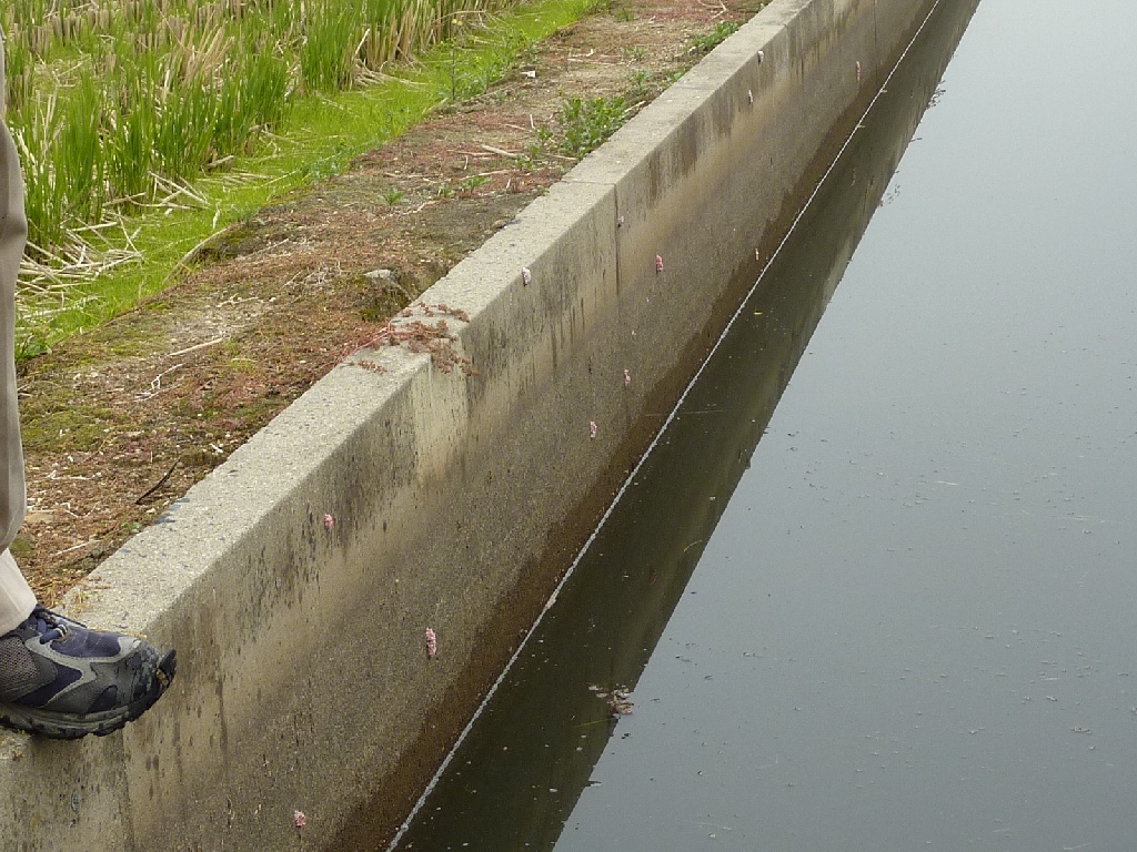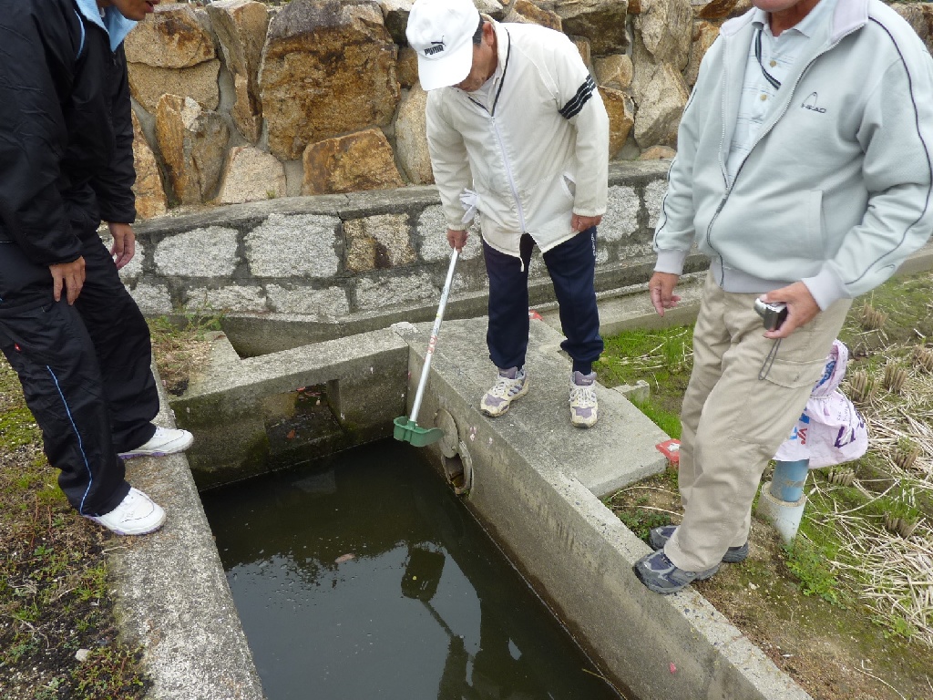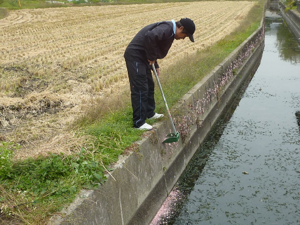 今回は水質検査の他に、ジャンボタニシの生息地調査も行いました