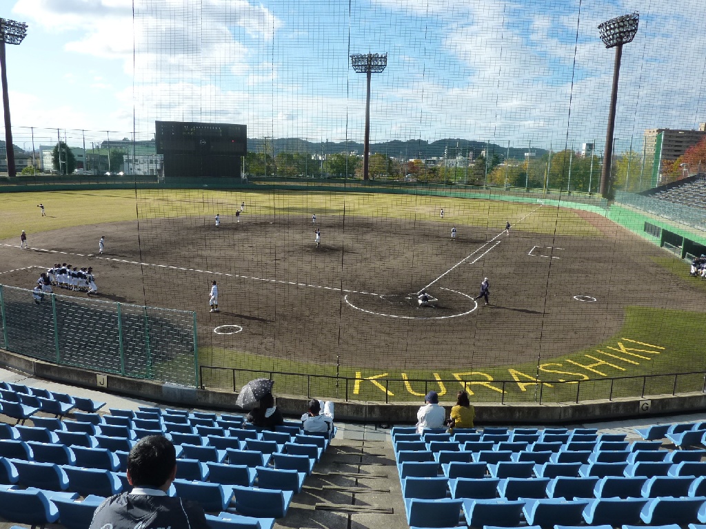 同時刻の試合開始の、倉敷市営球場に駆けつけました